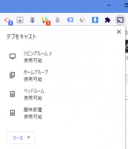 いつもなら「リビングルーム2」を選択してキャストしますが、ここはぐっとこらえて【ソース▼】という項目をクリックします。