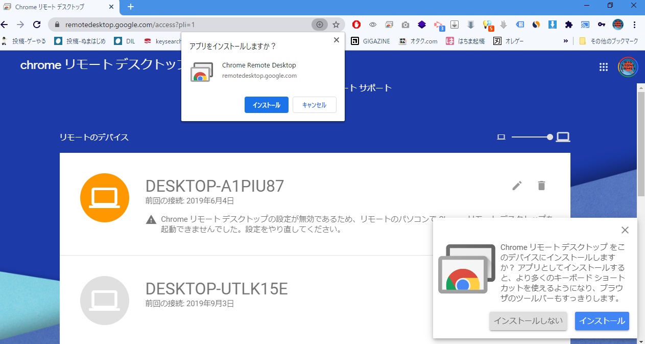 この画面はすみません、一度こちらでリモート入れたので少し違いますが、真ん中にリモートをオンにするか否かをきかれるので『オンにする』と上記のようにインストールを聞かれるのでそのままインストールしてください。